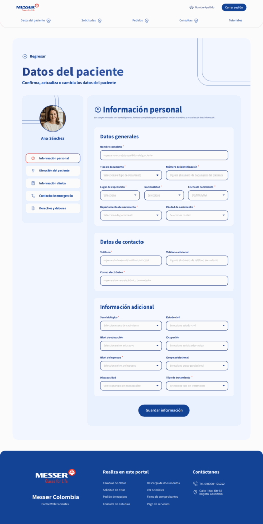 El foco estuvo en diseñar una experiencia intuitiva, ágil y alineada con la identidad de marca, asegurando que cada interacción redujera la carga cognitiva del paciente y facilitara la gestión de procesos críticos de manera simple, rápida y segura.